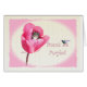 Un gatito gris lindo está en casa en este tulipán rosado precioso con un vuelo del colibrí adentro a visitar. Éstos hacen las tarjetas de nota maravillosas para que usted añada su propio mensaje.