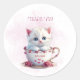 Hermoso gatito en Pegatina de flores rosas de la copa