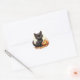 Cute el gatito negro con un pegatina de calabaza para ayudar a sellar los sobres de tu invitación o sellar los bolsos de tu favor.