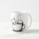 Un gatito dulce se duerme dentro de una taza de café, con suaves movimientos de vapor subiendo por encima, creando una escena tranquila y serena