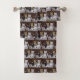 Un cuadro acrílico de cuatro gatitos juguetones metidos en problemas adorna este divertido juego de toallas.