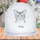 Celebra la temporada con este adorable globo de nieve de gato Abisinio. Este diseño incluye un gato blanco y negro con un espacio para agregar un nombre debajo.