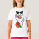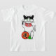 Esta camiseta ofrece un gato afortunado japonés que tienta en dinero. Ella lleva la campana tradicional y el babero rojo y en sus pies es una linterna festiva con el carácter para la "suerte" y una grúa de papel que representa paz. A la derecha, los caracteres leyeron "neko del maneki" ("tentando el gato ").