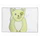 Dibujo de un gatito amarillo con una sonrisa interesante y garabatos de varios gatos