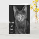 Este gato parece escalofriante, pero en realidad vino a desear un feliz cumpleaños. Tomen esta tarjeta de cumpleaños para los amantes del gato y el horror para ofrecerles un cumpleaños inolvidable.