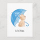 ilustracion personalizado de un lindo gato de color crema sentado bajo un paraguas azul.
