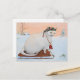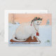 Celebra la magia del invierno con esta encantadora tarjeta postal que presenta a un caprichoso gato blanco con un sombrero de punto acogedor, montando un trineo a través de un paisaje nevado. Perfecto para saludos navideños, trae calidez y alegría festiva a cualquier correspondencia.