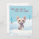 Una linda imagen de un gato blanco sentado en un banco de nieve. Este lindo gatito tiene ojos amarillos brillantes y orejas rosas altas. Se puede PERSONALIZAR el texto interior.
