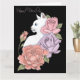 Un gato blanco con rosas en el fondo negro de la carta del Día de la Madre.