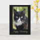 Gato blanco y negro en una tarjeta de cumpleaños feliz en blanco. Genial para el cumpleaños de un amante de los gatos.