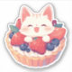 Un lindo gato blanco y un pegatina de tarta de bayas mezcladas