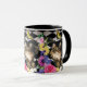 Un tabby marrón adorable con el Coon blanco de Maine de las patas adorna esta taza que también ofrezca una mariposa y las flores. Esta imagen está también disponible en otros productos en mi tienda de Zazzle.