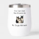 Tumbler con "Nuestro club de gatos tiene estándares - no se permiten perros" imagen que es lúdica y humorística. Es un diseño alegre, perfecto para los amantes de los gatos que disfrutan un poco de humor sarcástico, "gatos gobiernan, perros babosos".