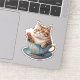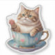 Un adorable pegatina de un gatito regordete dentro de un vaso de agua, con sus pequeñas patas colgando del borde y sus diminutos corazones flotando alrededor. Este bonito y acogedor diseño es perfecto para los amantes del gato y le da un toque de encanto a cualquier objeto.