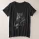 El diseño de la camisa representa una imagen llamativa y elegante de un gato fresco que luce una chaqueta de cuero y toca una guitarra eléctrica. El diseño está principalmente en blanco y negro, añadiendo un toque clásico e intemporal al gráfico. El objetivo central del diseño es el gato, que exuda un aire de confianza y una actitud de rock 'n' roll. El gato es retratado como un músico rebelde, personificado por la chaqueta de cuero, que añade un elemento robusto y arriesgado al personaje. La chaqueta de cuero puede tener cremalleras, estuches u otras características típicas de la chaqueta de biker o rocker. El gato se muestra en medio de tocar una guitarra eléctrica, creando un sentido de acción dinámica y música en el diseño. Es probable que la guitarra se represente con detalles intrincados, mostrando las cuerdas, el cuerpo y tal vez algunos adornos de estilo rock. La paleta de colores blanco y negro añade un sentido de contraste y dramatismo al diseño, haciéndolo visualmente llamativo y versátil. Los tonos blanco y negro le confieren al diseño una calidad vintage o retro que recuerda a las imágenes clásicas del rock and roll. En general, este diseño de camisa combina elementos de rebelión, música y frialdad felina para crear un gráfico llamativo y elegante que seduciría a los amantes de la música rock y un toque de encanto retro.