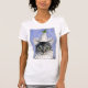 Una plata adorable y un gatito blanco que llevan un gorra trompeta-formado de la flor. ¡Lindo! También disponible como una tarjeta de nota, un sello y camisetas de los niños de los hombres.