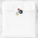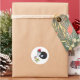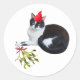 Un gato blanco y negro con una gorra roja sostiene un manto de mistletoe en este colorido pegatina vacacional.