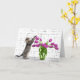 Gato con tarjeta de cumpleaños de tulipán rosado