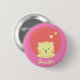 NewParkLane - botón personalizado para niños, con un lindo personalizado de gatos amarillos, con fondo rosado y rojo caliente. ¡El diseño es muy bonito para un fiesta de cumpleaños! Fácil de personalizar en Zazzle con su propio texto para un diseño personalizado. Proteja esta colección para ver los elementos coincidentes.