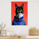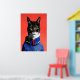 Retrato de un lindo y adorable gato bombero sobre un fondo rojo. Este es un arte generado por IA.