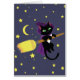 ¡Un gato negro vuela por la noche en la escoba de una bruja mientras lleva a su gorra! Este diseño es perfecto para decoraciones de Halloween. Personalizar o personalízalo añadiendo tu propio texto o imágenes.