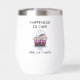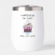 Tumbler de vino con un ilustracion lúdico de un diseño de gato con temática de cumpleaños que es lindo, caprichoso y humorístico.