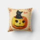 Imagen de Halloween de la almohada de Halloween que muestra a un gato muy lindo sentado en una calabaza de un diseño vintage de la silla de ruedas de Ellen.