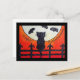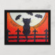 Gato de Halloween en una cerca en la postal de la