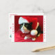 Esta tarjeta postal de Navidad con el gato Meowy presenta un gatito esmoquin con un sombrero de Santa sentado sobre un fondo de terciopelo rojo. Las palabras "MEOWY" aparecen a la izquierda y "CHRISTMAS" aparecen a la derecha. En el reverso de la postal puede personalizar su dirección. Un sentimiento de gato lindo también aparece en el reverso de la postal. Incluso puede personalizar los apellidos de su familia en esta encantadora tarjeta. Lo mejor es que algunas pequeñas y lindas patas de gato verdes aparecen en la parte posterior, así que quizás la gatita ha puesto su sello en esta hermosa tarjeta. Esta es una excelente tarjeta de Navidad para enviar a los amantes de los gatos. Copyright peachesthetuxedocat