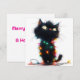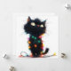 Este gato negro despeinado parece hilarantemente disgustado enredado en luces coloridas. ¡Perfecto para cualquiera que ame un poco de humor festivo de desastres!
