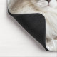 Un gato Ragdoll mullido con ojos azules llamativos reclinándose sobre una alfombra blanca suave