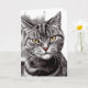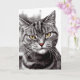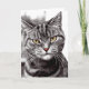 Esta divertida tarjeta para los amantes de los gatos y los propietarios de gatos incluye una fotografía de primer plano de la cara de un hermoso gato de tabby con cabello de plata con verdadera actitud. Ella parece estar diciendo, ¿a quién miras? He usado colorantes selectivos para sacar la belleza de sus grandes ojos y su dulce nariz taimada.