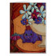 Todavía vida con el gato, las flores y las figs. púrpuras.