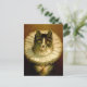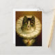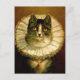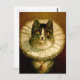 Esta postal es una reproducción de una litografía vintage que muestra un gato con un collar isabelino y un collar de campana.