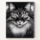 Revista en un retrato de cierre de un gato forestal noruego con un detallado sombreado en escala de grises, mostrando sus intrincados patrones de piel. El uso de negros y blancos contrasta marcadamente para resaltar el rostro del felino.
