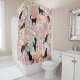 Café París de gato negro francés con cortinas de ducha rosas y verdes