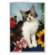 Este pequeño gatito de bonito está posando entre las flores de primavera para una tarjeta de bienvenida para todas las ocasiones.