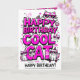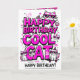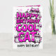 Di deseos de cumpleaños meow-velosos con esta tarjeta de cumpleaños "Gato Genial" en negrita y divertida. Con una tripulación de gatos relajados que usan gafas de sol en tonos rosados vibrantes, este diseño ilustrado está repleto de estilo urbano divertido y encanto felino. Con texto inspirado en grafitis apilado y personajes de gatitos extravagantes encaramados en patinetas y sombreros de fiesta, es la tarjeta perfecta para amantes de los gatos, niños, adolescentes o cualquier persona que sea demasiado genial para una tarjeta de cumpleaños normal.