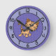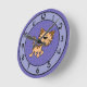 Funny personalizado de gato en un reloj de pared en tonos morados. ¿La decoración de una guardería, una sala de juegos para niños o un dormitorio para niños? ¡Un reloj lindo es el accesorio perfecto! Este reloj también haría un recién nacido inolvidable o un nuevo regalo de casa. Disponible en dos tamaños de reloj redondo, o un reloj cuadrado. Copyright Scarebaby Design.