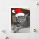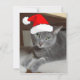 hermoso gato gris azul ruso con sombrero de Santa