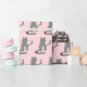 Gato gris con un vaso de vino tinto sobre fondo rosado. Se puede cambiar el color de fondo.