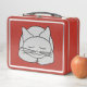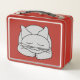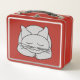 Un gato gris durmiendo con una sonrisa en su cara contra un fondo rojo es un divertido diseño de regalo para amantes de los felinos, trabajadores de refugios de animales y familias que cuidan gatos.