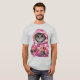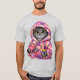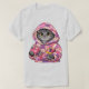 Gato gris en camiseta de edredón reciclado
