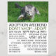 Gato gris sobre hierba, Mascota de eventos de adopción, folleto publicitario por la Tienda de tarjetas de visita.
