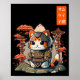 Gato guerrero japonés escribiendo arte anime para los amantes del kawaii