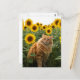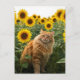 Cuidadoso gato jengibre en el campo de los girasoles Postcard for Postcross