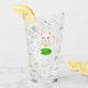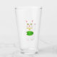 Este impresionante vaso de vidrio muestra una imagen de diseño gráfico de un afortunado gato oriental blanco ondulado. El gato tiene hermosos ojos de oro y lleva puesto un medallón de oro en el cuello. El gato tiene orejas y bigotes rosas. Este lindo gatito sostiene una ficha de oro con entrada de jade verde y un mensaje en texto dorado que dice "Buena suerte".
