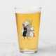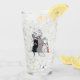 Este vaso para bebidas tiene una madre de gato sonriente blanca sentada con sus tres gatitos que son negros, blancos y grises, todos con arcos rosados alrededor del cuello.