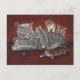 Una postal de mi pintura "Gato mami" de un gato mami tratando de dormir un poco mientras sus gatitos se trepan por encima de ella. ¿Qué debe hacer una madre?