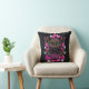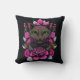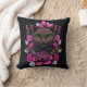 Acento divertido arroja almohada, con obras de arte de un gato marrón y flores rosadas, contra un fondo negro. Buena idea de regalo para cualquier amante felino.